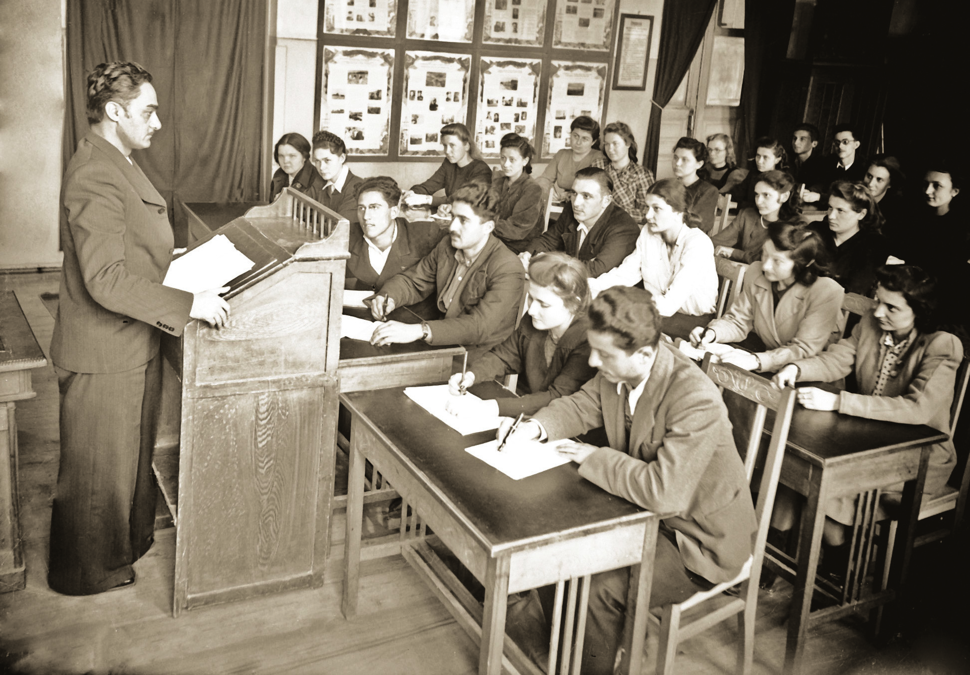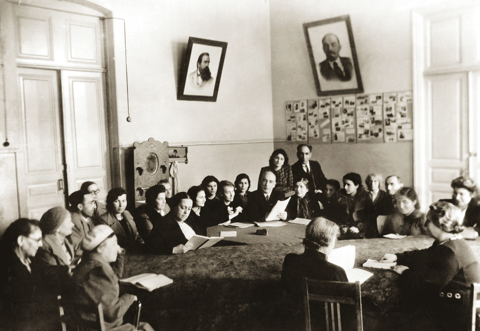 Professor Əlisöhbət Sumbatzadə Tarix fakültəsinin 2-ci kurs tələbələrinə mühazirə oxuyarkən (1950) |