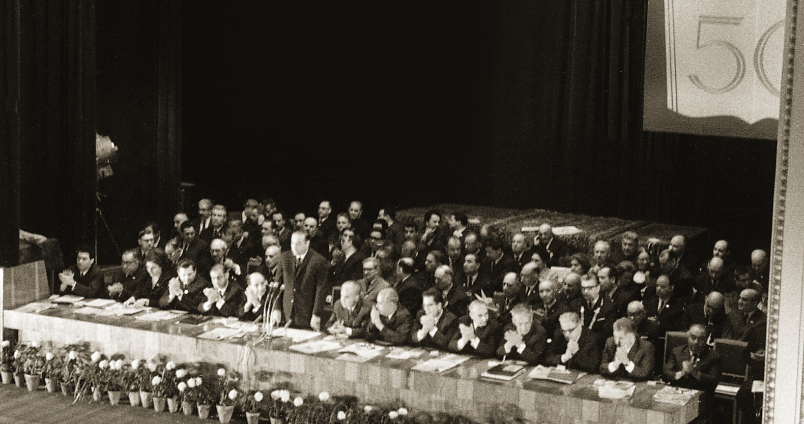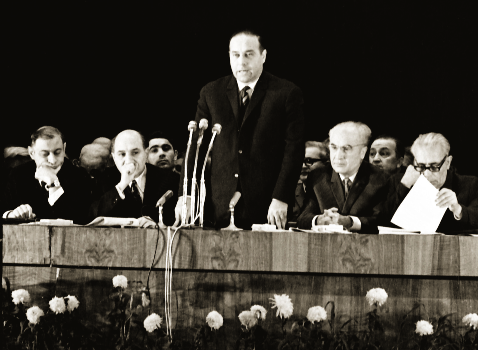 | Azərbaycan KP MK-nın 1-ci Katibi Heydər ƏliyevUniversitetin 50 illiyinə həsr olunmuştəntənəli yubiley tədbirində çıxış edərkən (1969) | Azərbaycan KP MK-nın 1-ci Katibi Heydər Əliyev Universitetin 50 illiyinə həsr olunmuş təntənəli yubiley tədbirində çıxış edərkən (1969) | Azərbaycan KP MK-nın 1-ci Katibi Heydər Əliyev Universitetə Qırmızı Əmək Bayrağı Ordenini təqdim edərkən (1971) |