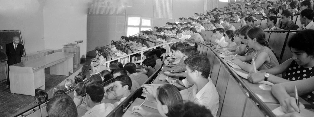 Universitetin Azərbaycan ədəbiyyatı kafedrasının müdiri, filologiya elmləri doktoru, professor Mir Cəlal Paşayevin mühazirəsi (1969) |