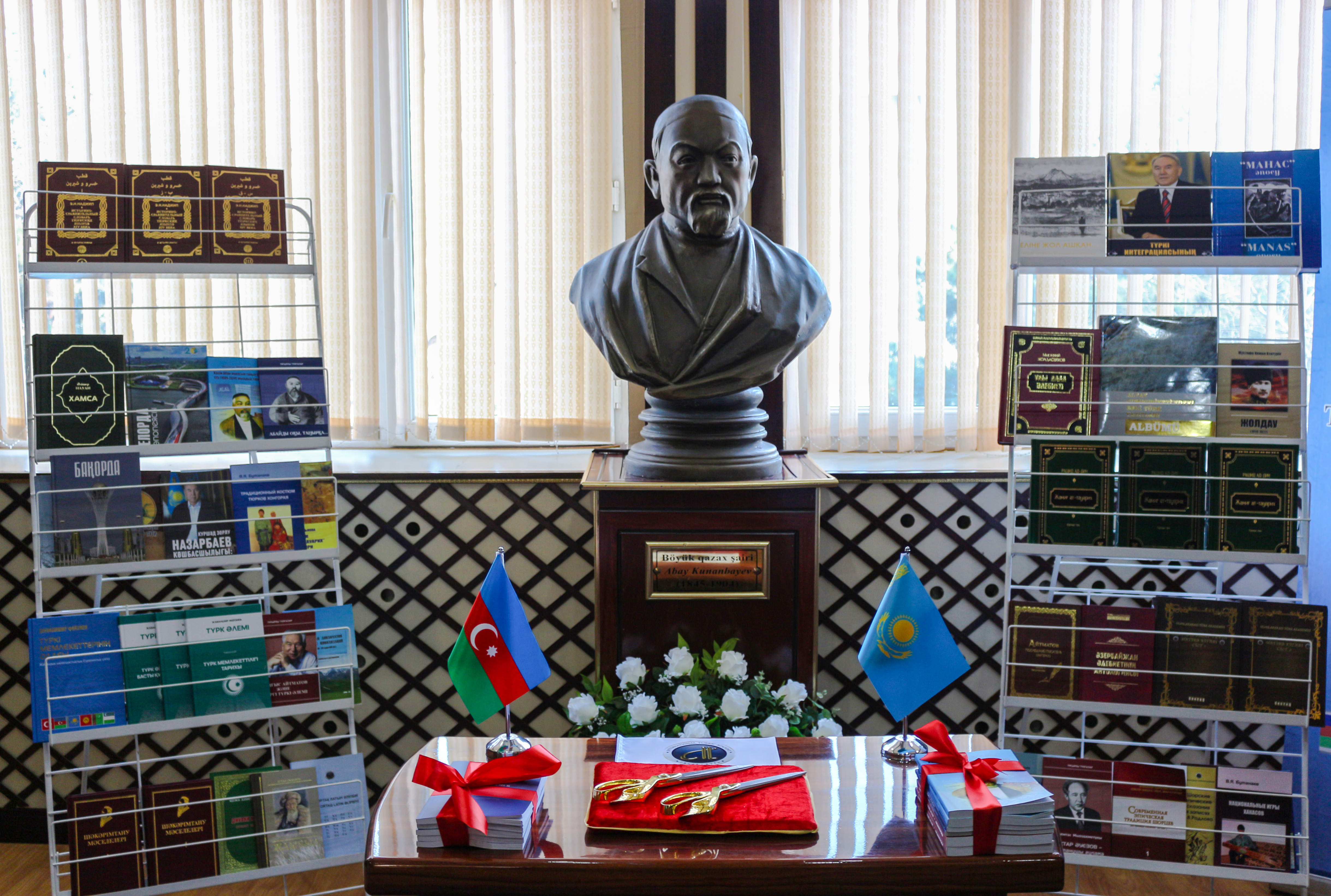 Abay Kunanbayev adına qazax dili, tarixi və mədəniyyəti mərkəzi - 2011-ci ilin may ayından Bakı Dövlət Universitetində qazax şairi, yazıçısı, ictimai xadimi, müasir qazax yazılı ədəbiyyatının banisi Abay Kunanbayev adına Qazax Mərkəzi fəaliyyət göstərir. Azərbaycan və qazax xalqları arasındakı mədəni əlaqələri daha da inkişaf etdirmək məqsədilə yaradılan Mərkəzin əsas fəaliyyət sahəsinə mədəni və sosial tədbirlərin keçirilməsi, iki ölkənin mədəniyyəti və ənənələri haqqında ətraflı məlumatların daha geniş miqyasda yayılması üçün müxtəlif mövzulu tədbirlər keçirmək, o cümlədən tanınmış incəsənət xadimləri, yazıçı və şairlə görüşlərin təşkili daxildir Mərkəzin məqsədi Azərbaycan və Qazaxıstan arasındakı mədəni və sosial əməkdaşlığın inkişafını dəstəkləmək, Qazaxıstan mədəniyyəti, tarixi ilə tanış olmaq istəyənləri lazımı materialla təmin etmək, iki ölkənin mədəniyyəti və ənənələri haqqında ətraflı məlumatların daha geniş yayılması üçün müxtəlif mövzulu layihələri reallaşdırmaqdır. Mərkəz həm də iki ölkə arasında tələbə mübadiləsini həyata keçirir. |